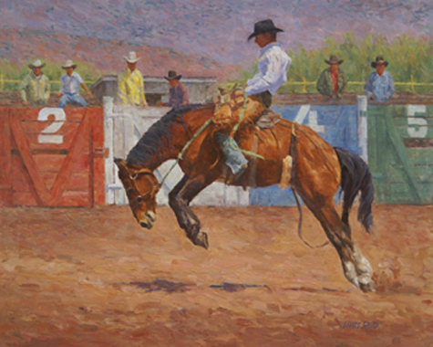 "Saddle Bronc Ride" 14 x 18" Oil on board Sold